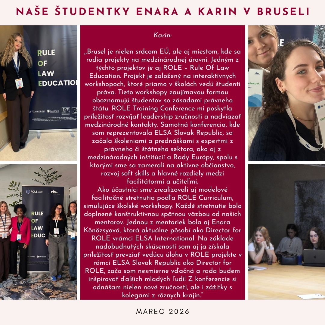 Naši ELSA-ci sa viackrát zúčastnili simulovaného trestného procesu, na ktorom sa dva roky po sebe prebojovali až do celoslovenského finále, v ktorom obsadili pekné druhé miesto.