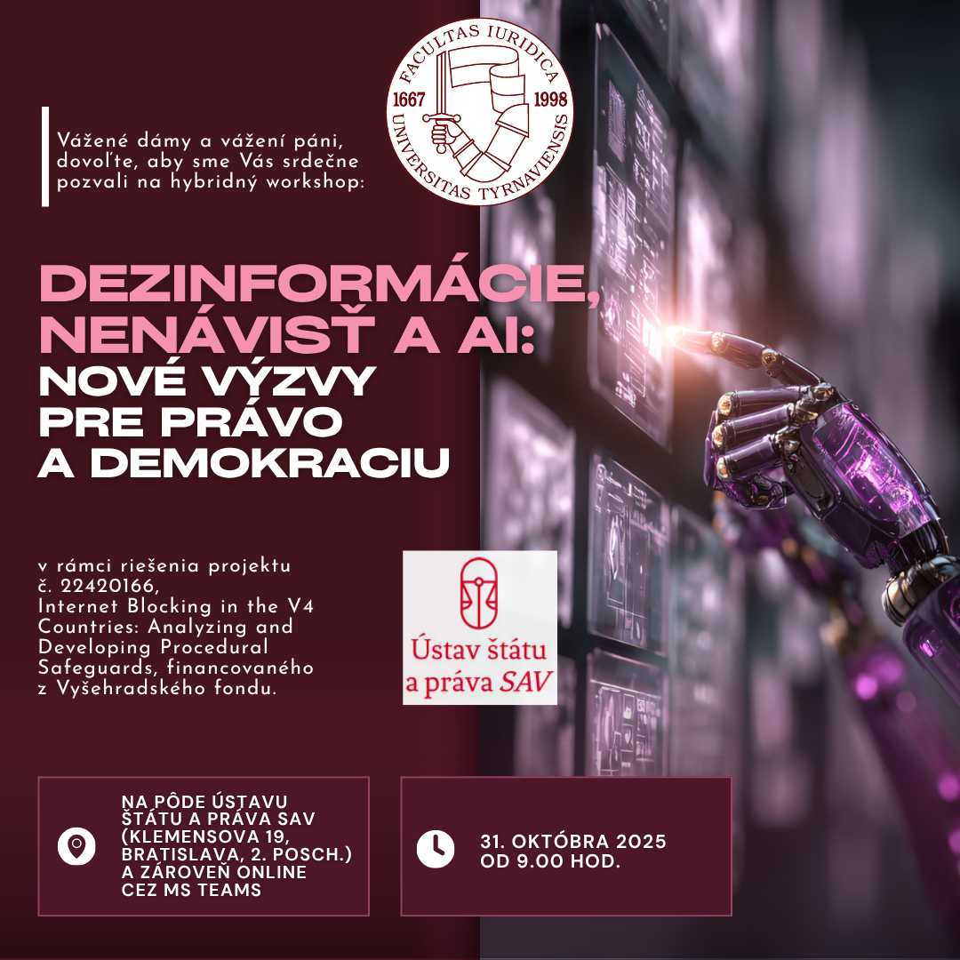 Professor Gábriš, Professor Laclavíková and Associate Professor Vyšný will participate in the international conference under the Visegrad Project: “Continuity and Discontinuity of Legal Systems after WWII in Czechoslovakia, Hungary and Poland: The Difficult Heritage (1944/1945-1989)“. The conference will take place in Kraków between 3 and 5 February 2025.