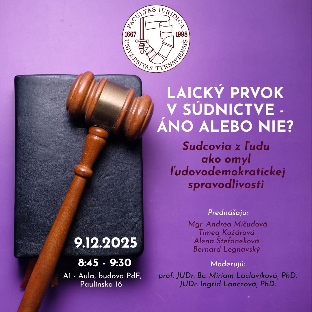 Právno-historická konferencia ,,70. výročie vzniku Občianskeho zákonníka z roku 1950 a právna politika v 20. storočí“ sa konala v rámci medzinárodného právnického kongresu Trnavské právnické dni (Dies iuris tyrnaviensis), organizovanom Právnickou fakultou Trnavskej univerzity v Trnave. Na online konferencii vystúpili domáci aj zahraniční účastníci na nasledovné témy: Obligácie na území Slovenska v historických súvislostiach (doc. JUDr. Denisa Dulaková Jakúbeková, PhD.), Inštitút deleného vlastníctva nehnuteľností v Poľsku po druhej svetovej vojne do obdobia politickej transformácie v 90-tych rokoch (Dr. hab. Aneta Kaźmierczyk, Prof.), Kodifikácia uhorského súkromného práva do roku 1918, s dôrazom na kodifikačné aspekty samostatného obchodného práva (Dr. György Képes, PhD., habil.), Občiansky zákonník z roku 1950 a úprava vlastníctva (Mgr. et Mgr. Andrea Kluknavská, PhD., LL.M.), Dôvody na obmedzenie a pozbavenie spôsobilosti na právne úkony v sovietskych a československých občianskych zákonníkoch (JUDr. Ingrid Lanczová, PhD.), Vplyv rodinnoprávnej politiky krajín sovietskeho bloku na kodifikáciu vietnamského rodinného práva v roku 1959 (Linh Nguyen Thi My, PhD. candidate), Náhrada škody podle Občanského zákoníku z roku 1950 (Mgr. Martin Pelikán), Zmeny v socialistickom vlastníckom práve po prijatí Občianskeho zákonníka v roku 1950 (JUDr. PhDr. Martin Skaloš, PhD.), Premeny dedičského práva na Slovensku po prijatí Občianskeho zákonníka z roku 1950 (Mgr. Ján Sombati, PhD. – Mgr. Lenka Martincová, PhD.), Počiatky a vývoj ochrany osobnostných práv v Občianskom zákonníku z roku 1964 (Dr. habil. Piotr Szymaniec, Prof. - Dr. Marta Mackiewicz), Občianske právo v Nemeckej demokratickej republike (doc. JUDr. Peter Vyšný, PhD. et Ph.D.).
