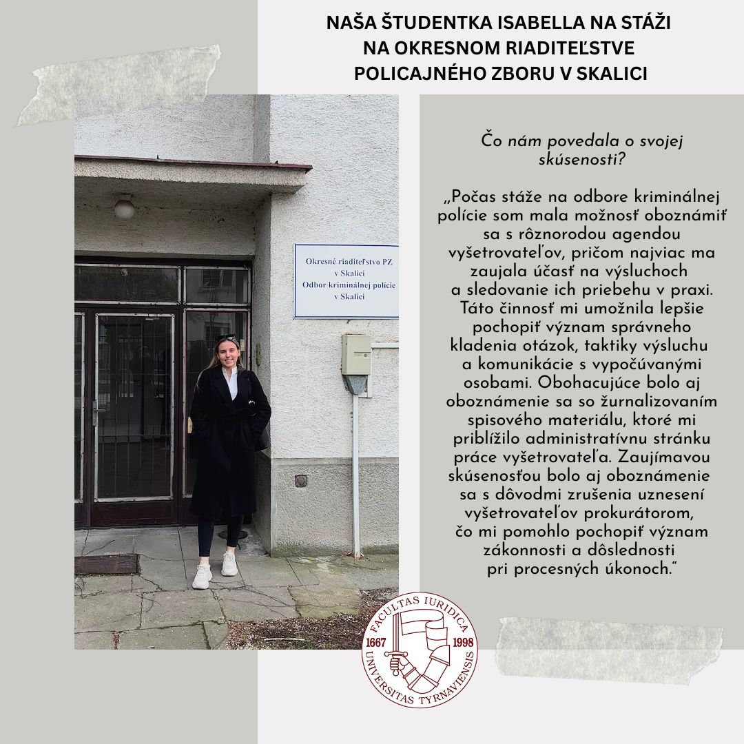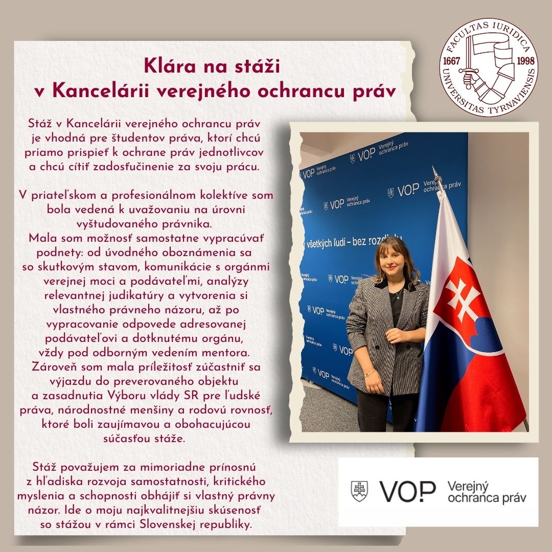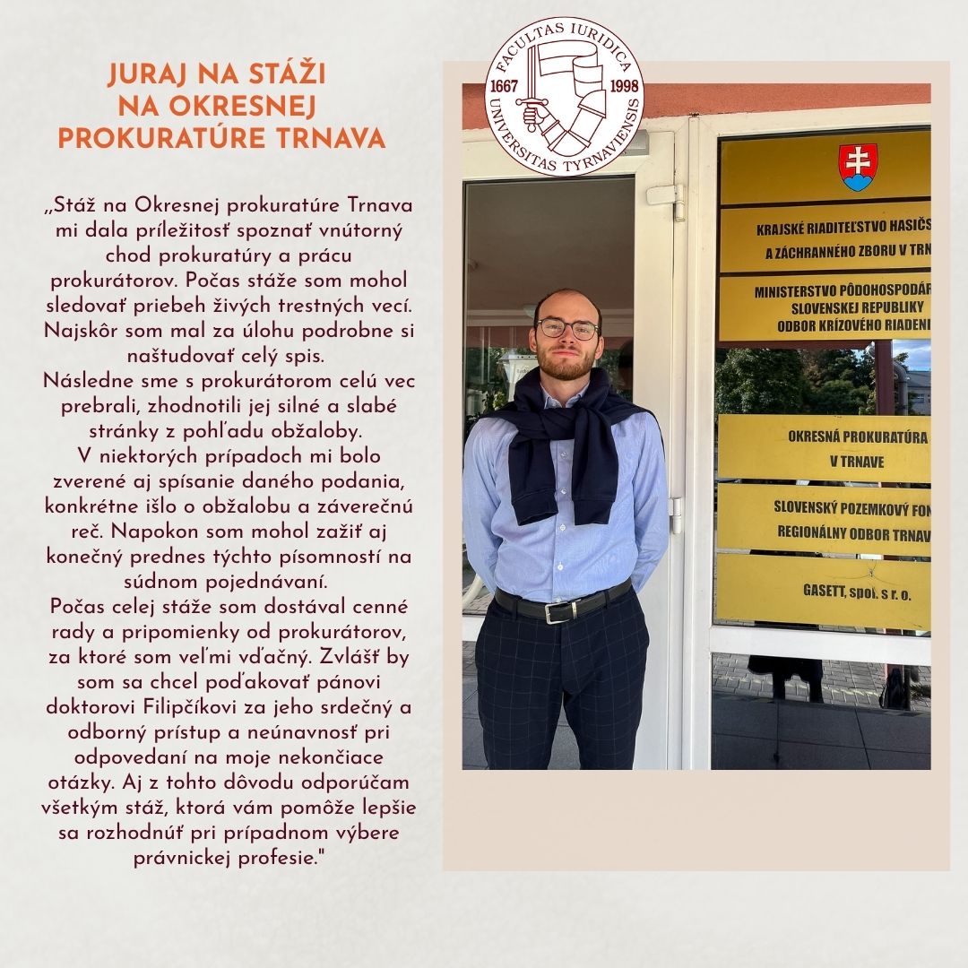 Náš študent Samuel stážoval hneď v prvom semestri svojho štúdia na Právnickej fakulte