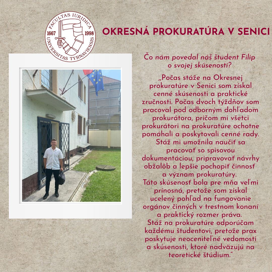 Náš študent Rastislav na stáži na prokuratúre - report