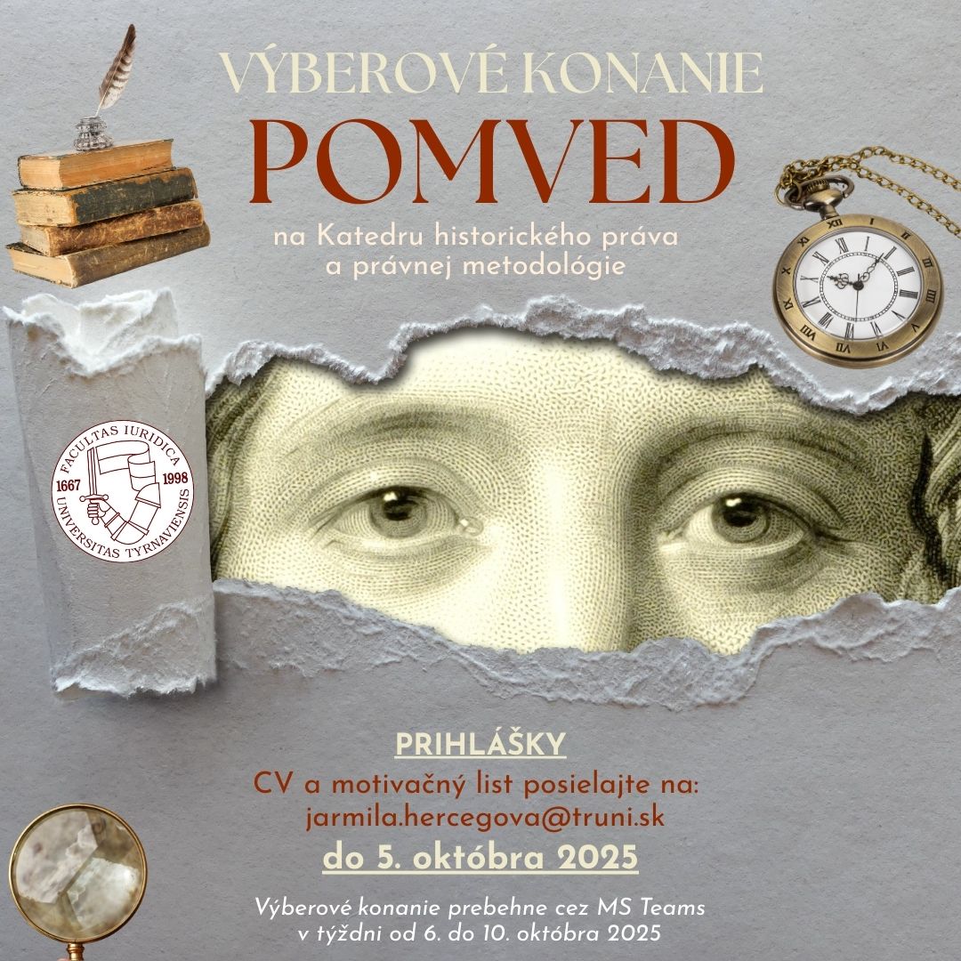 vyhlasujeme výberové konanie na pozíciu pomocnej študentskej vedeckej sily na Katedre historického práva a právnej metodológie.