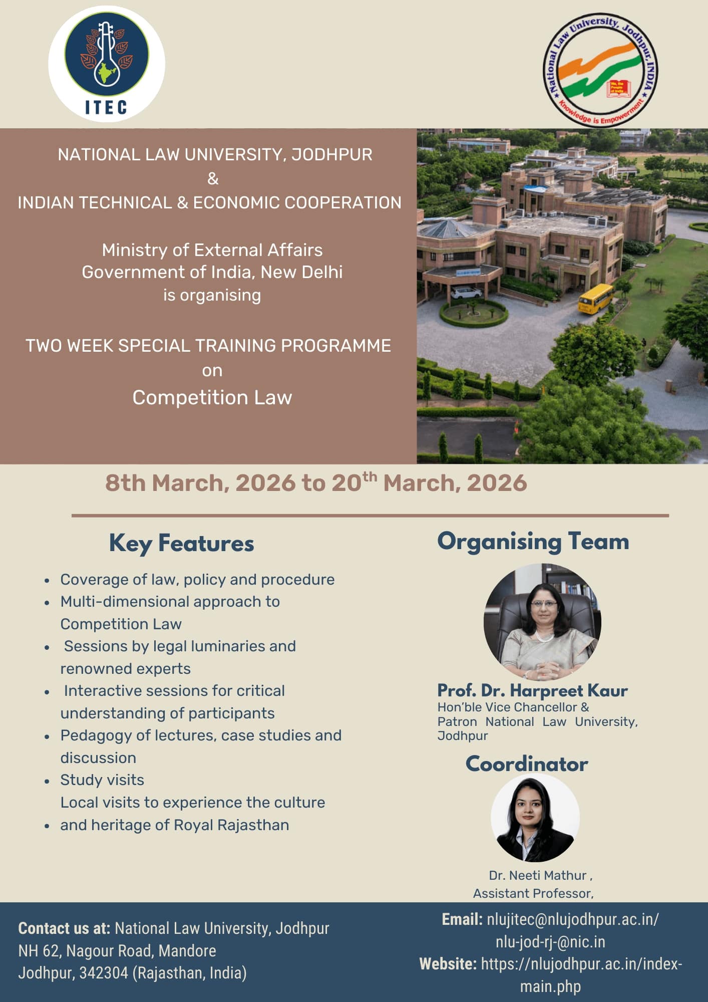 National Law University, Jodhpur is conducting an ITEC course titled “COMPETITION LAW” from 08-20 March, 2026.