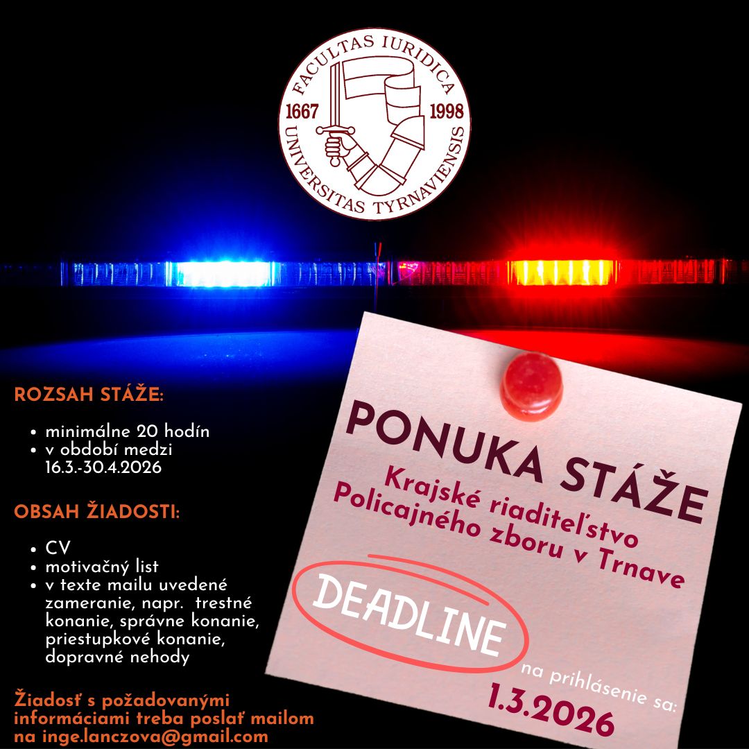 Ponuka stáže - Krajské riaditeľstvo Policajného zboru Trnava