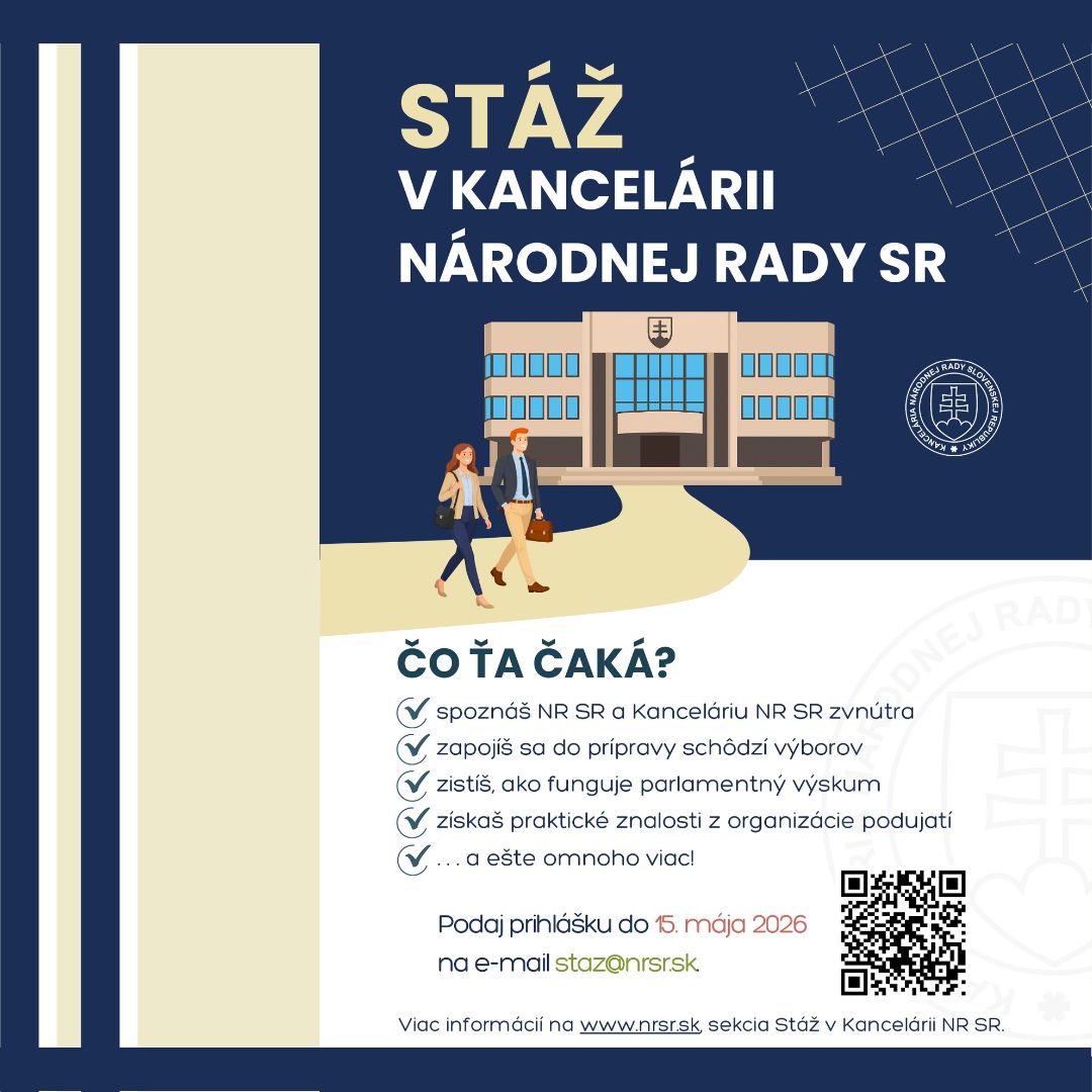 Parlamentný inštitút ako poverené pracovisko Kancelárie NR SR pripravuje na akademický rok 2026/2027 už dvadsiate deviate pokračovanie stážového programu.
