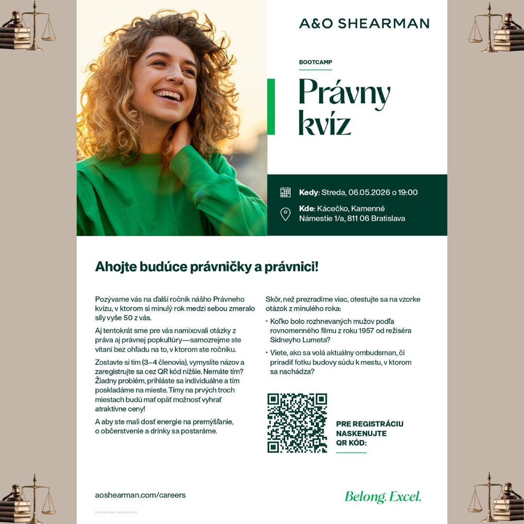 dávame do pozornosti právny kvíz, ktorý organizuje A&O Shearman. Ste srdečne vítaní zúčastniť sa.