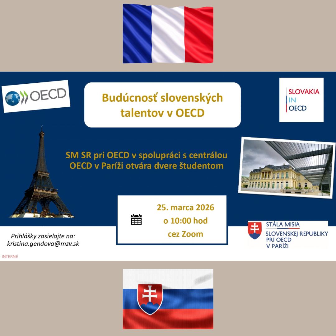 dávame do pozornosti, že Stála misia SR pri OECD v Paríži spolu s OECD pripravila webinár ku kariérnym možnostiam. Spoznajte mechanizmy fungovania organizácie a konkrétne kroky, ktoré vás dovedú ku kariére v OECD.
